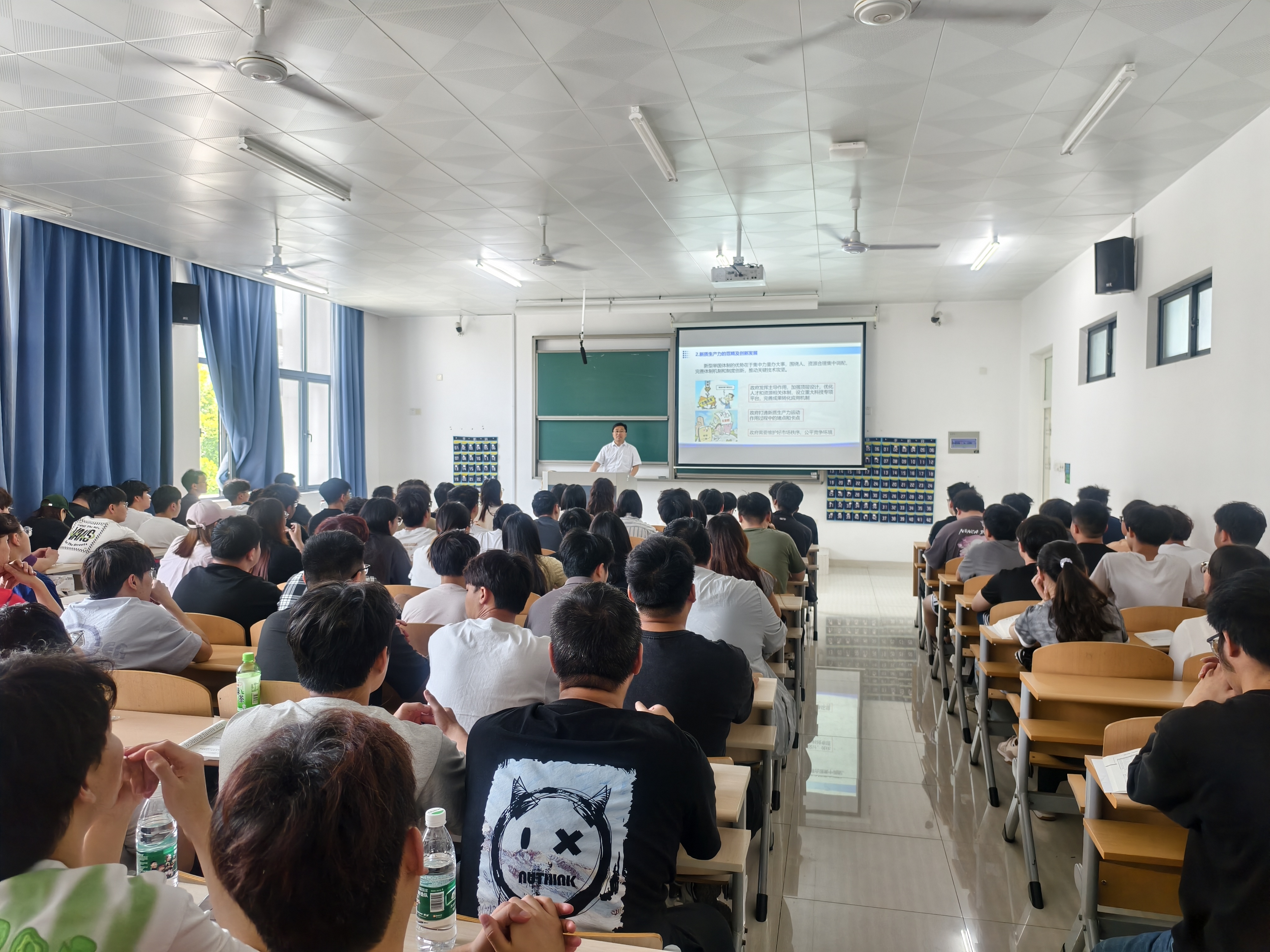 6月4日上午,学院(管委会)党委副书记、院长茅靖峰为工学部学生讲授主题为“深刻把握新质生产力与新型生产关系”的《形势与政策》课。他结合当前科技革命与产业变革趋势,系统阐释了新质生产力的内涵特征与发展路径,强调要构建与之相适应的新型生产关系。授课深入浅出,既有理论高度又贴近实际,为学生理解国家发展战略提供了重要指导。课后同学们纷纷表示受益匪浅,将把学习成果转化为创新实践的动力。