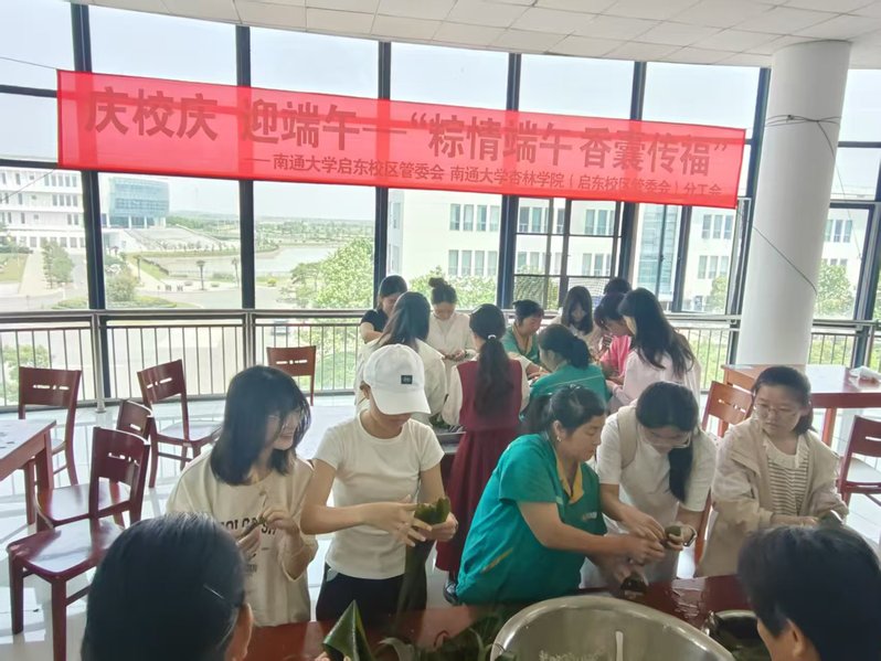 为庆祝南通大学建校113周年,弘扬中华传统文化,5月31日,学院(管委会)分工会联合服务保障办公室、明德物业,在启东校区举办“迎校庆,庆端午——粽情端午,香囊传福”活动。师生代表百余人参加活动,现场气氛温馨热烈。