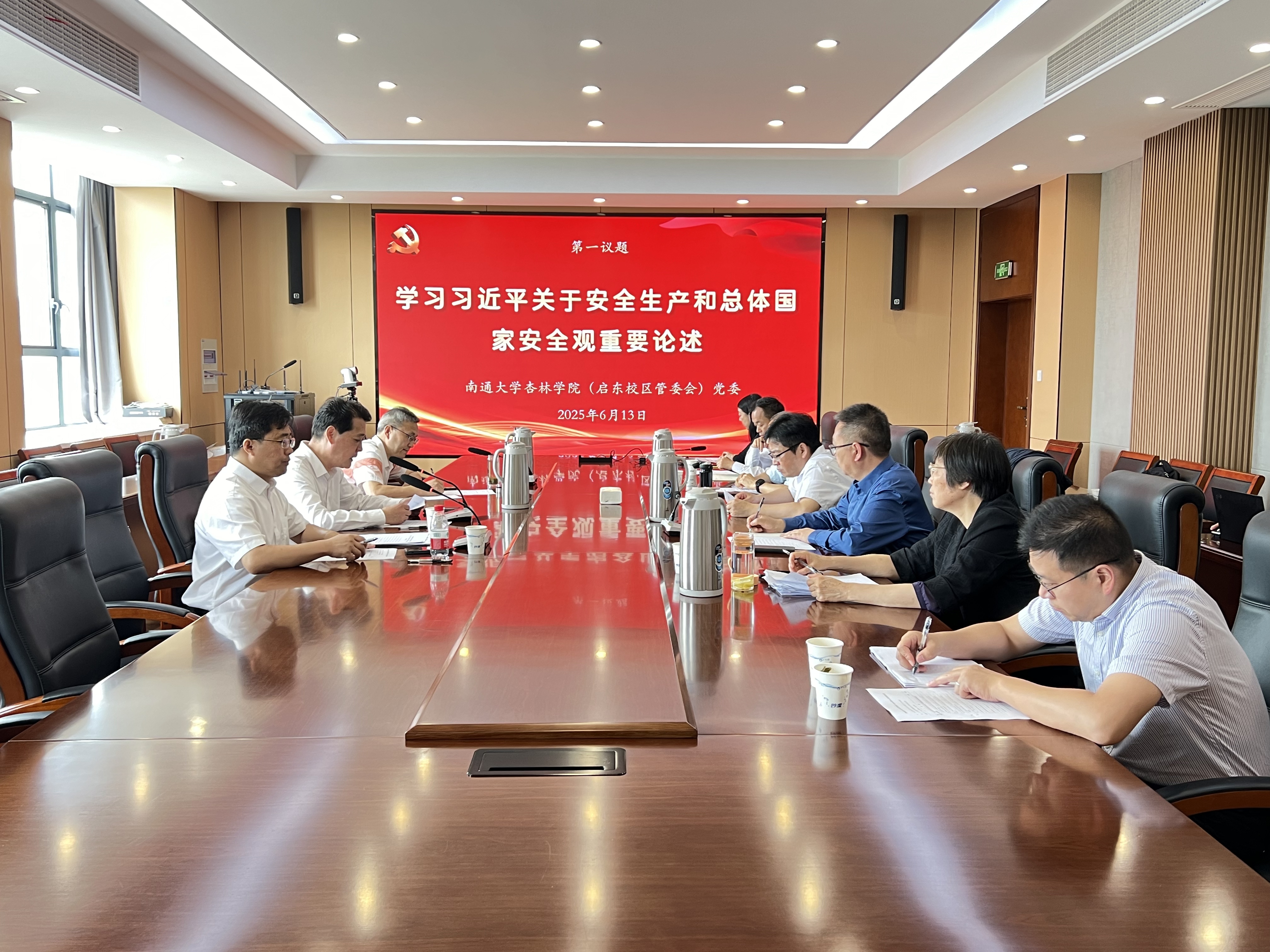 6月13日上午,学院(管委会)党委理论学习中心组在啬园校区以“第一议题”形式学习习近平关于安全生产的重要论述和重要指示批示精神。学院(管委会)党委书记、启东校区管委会常务副主任朱晓阳主持学习并讲话。