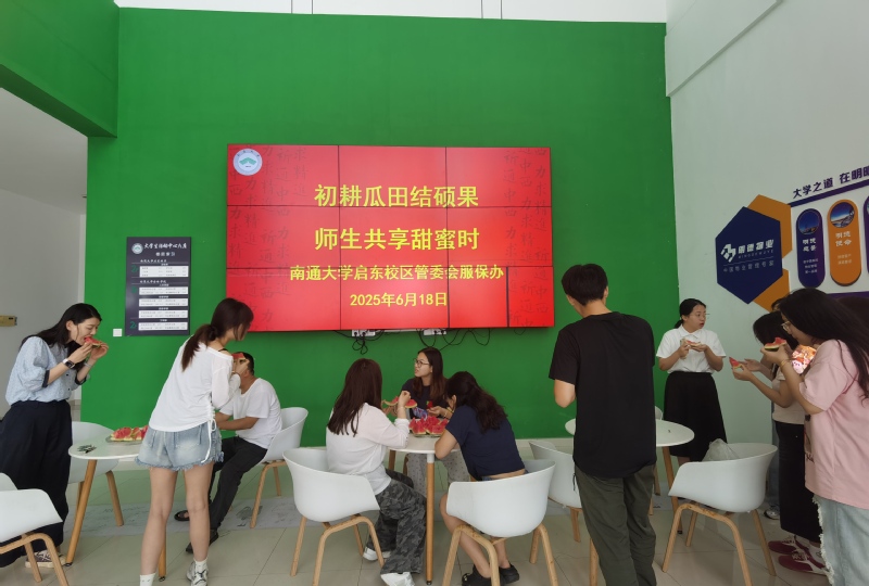 骄阳似火,启东校区部分师生代表早早来到校区瓜田种植区,开启西瓜采摘活动。采摘过程中,后勤老师全程指导,师生们快速掌握挑选成熟西瓜的方法,并在分工协作、互帮互助中完成搬运工作,将西瓜送至一食堂三楼和物业服务大厅,汗水挥洒间尽显劳动精神。西瓜经清洗、切分后,清甜香气弥漫。“亲手种的西瓜吃起来无比的甜,是任何西瓜都比不了的”,一位同学话语中充满了感慨,她曾参与西瓜的开垦、种植活动。师生围坐共同品尝亲手种植的西瓜,纷纷表示深刻理解劳动育人精神,体会到劳动的价值与乐趣。