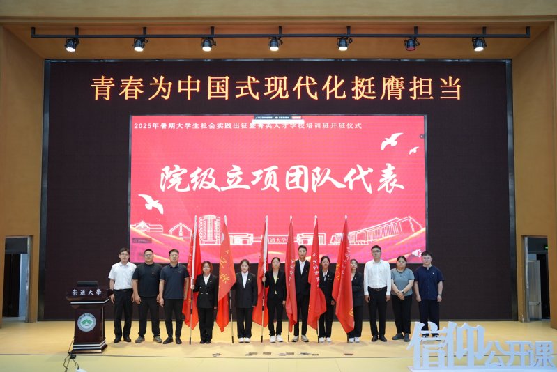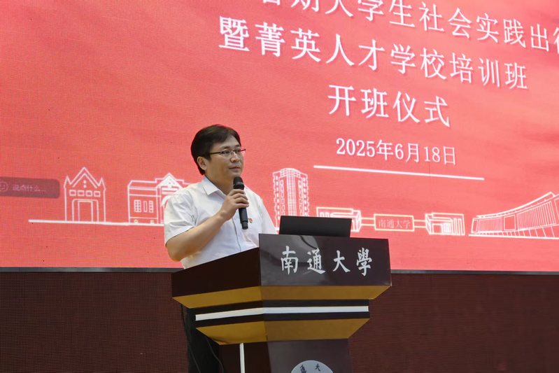 6月18日中午,我院于启东校区大学生活动中心报告厅举办2025年暑期大学生社会实践出征暨2025级菁英人才学校培训班开班仪式。学院(管委会)党委副书记兼副院长陈龙出席活动并为入选2025年大学生知行计划团队代表授旗。