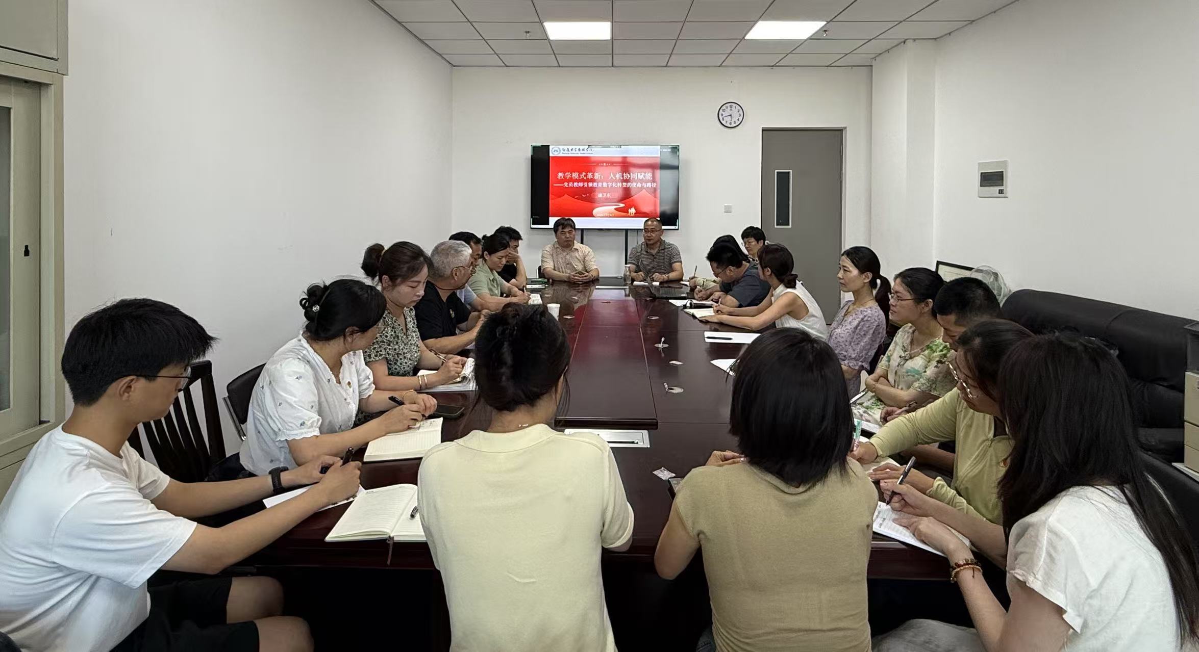 为把握时代发展脉搏,激发党员师生投身教育变革,7月4日下午,人文学部党总支在啬园校区25号楼809会议室举办专题党课。学部党总支书记康卫东担任主讲,学部全体师生党员通过线下与线上方式参加学习,学院副院长张效诗出席活动。