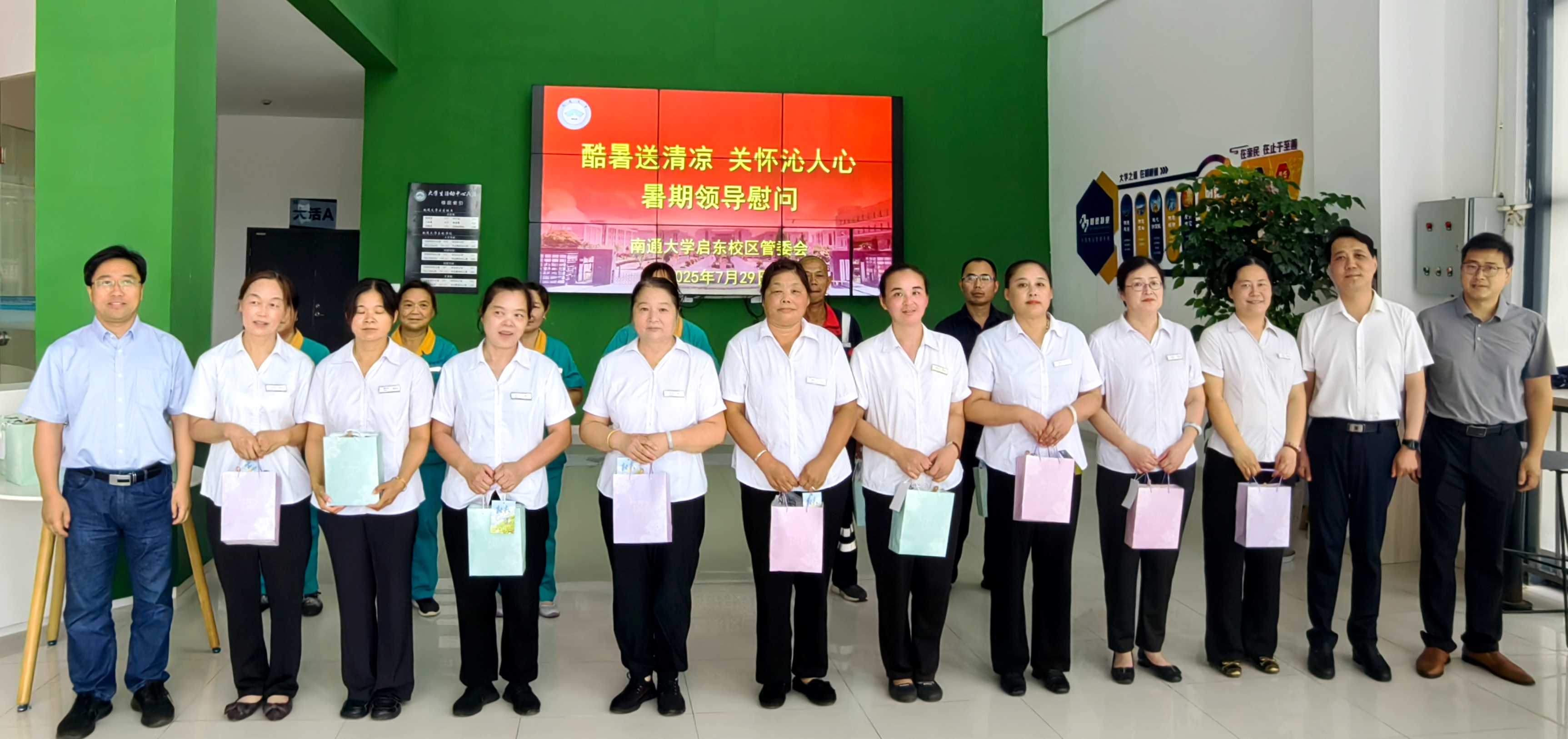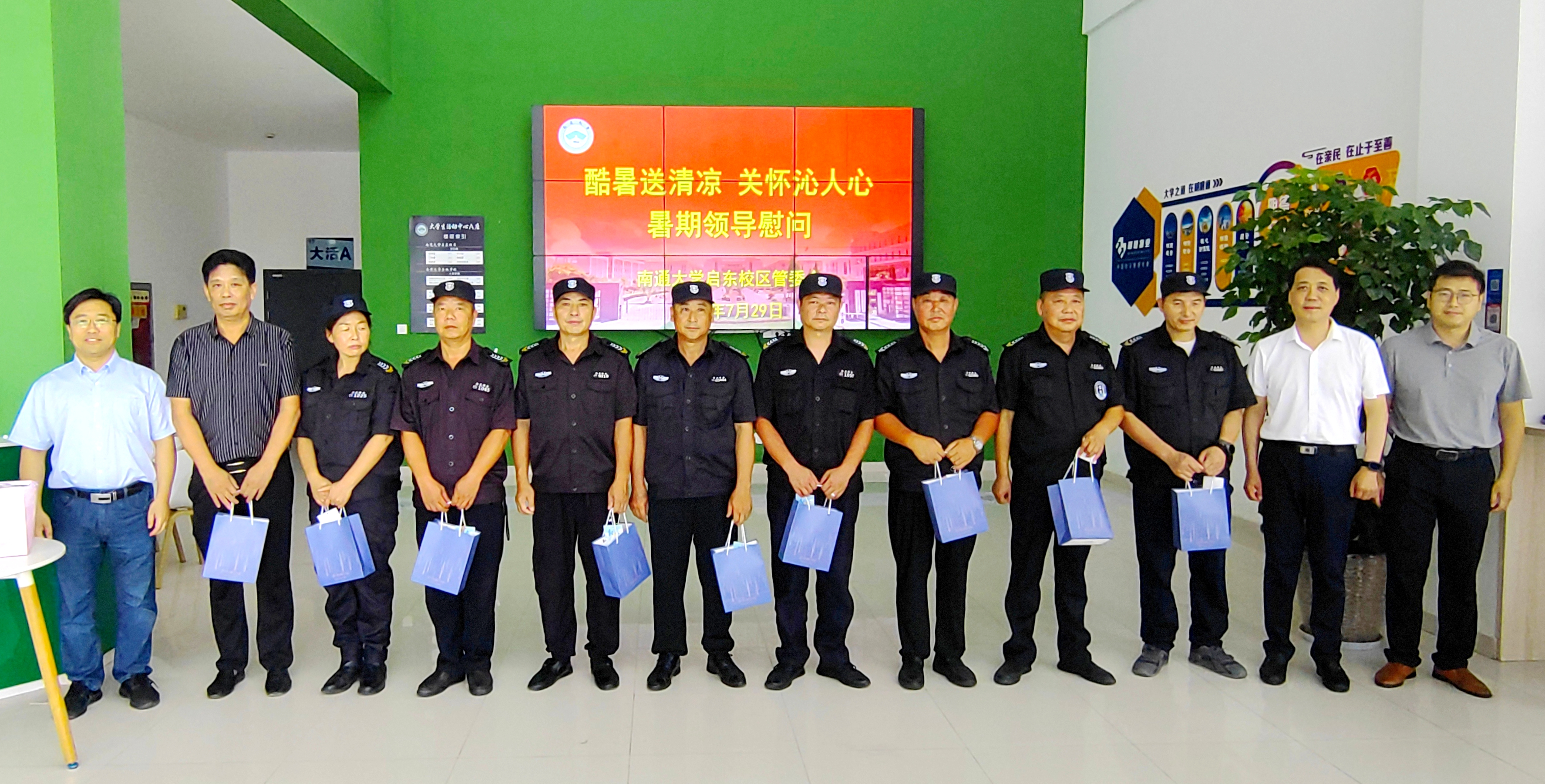 7月29日下午,酷暑当头,学院(管委会)党委书记、启东校区管委会常务副主任朱晓阳,学院(管委会)党委副书记、院长茅靖峰率队,深入项目一线慰问后勤员工与安保人员。
