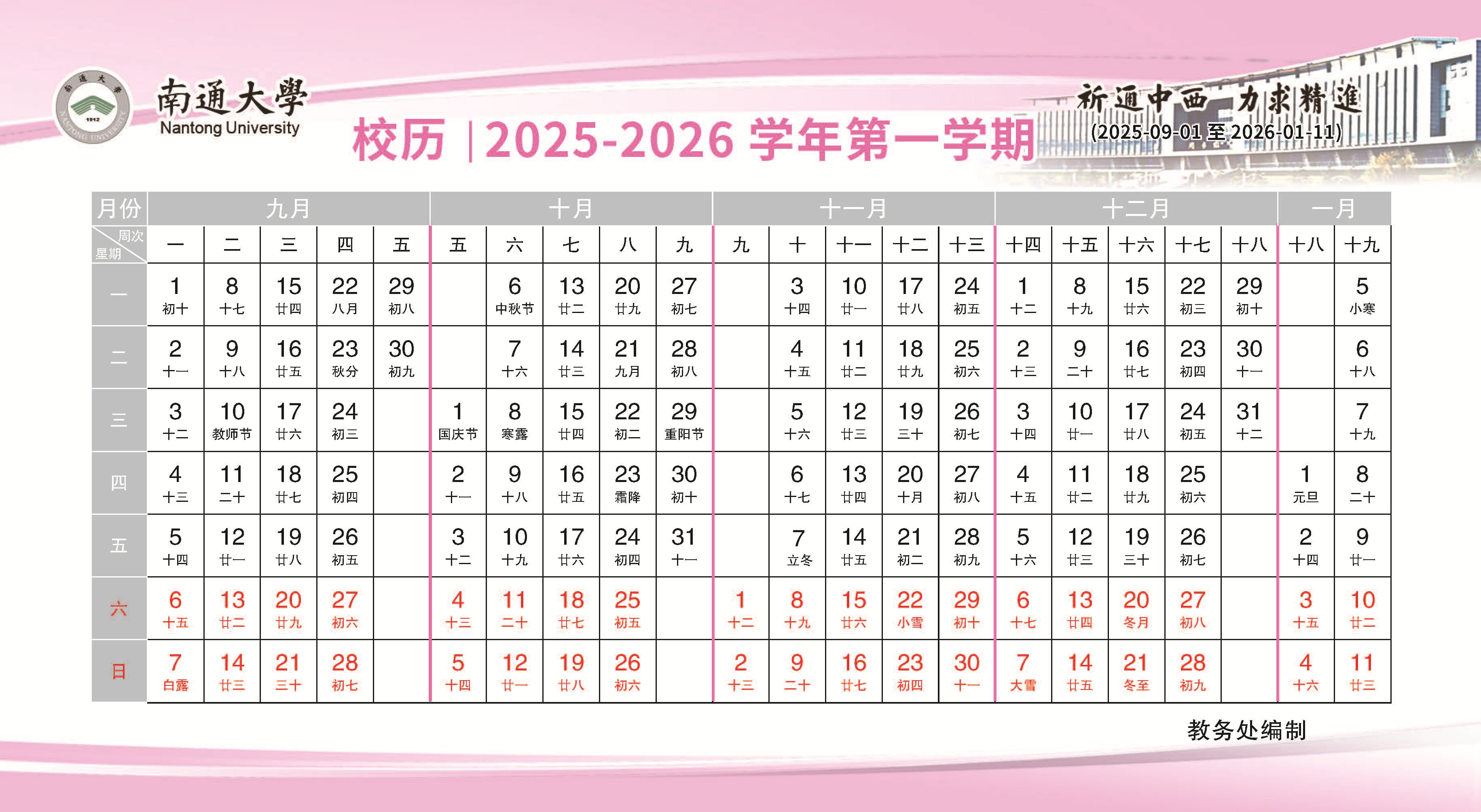校历| 2025-2026 学年第一学期