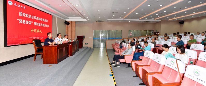 9月15日,由国家税务总局高邮市税务局主办,我校承办的“强基提效”履职能力提升培训班在启东校区举行。高邮市税务局党委委员、副局长徐志勇,杏林学院(管委会)党委书记、启东校区管委会常务副主任朱晓阳出席开班仪式并致辞。杏林学院副院长张效诗主持开班仪式。