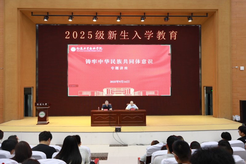 9月16日下午,我院面向2025级新生开展入学教育,举办铸牢中华民族共同体意识专题讲座。中共启东市委统战部副部长、启东市民族宗教局局长刘锦华受邀作专题宣讲,学院(管委会)党委统战委员、副院长潘志勇主持会议并讲话。