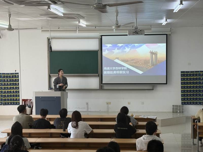 李晓青详细讲解了赴美带薪实习项目的岗位情况、生活条件、申请流程等方面内容,并就同学们普遍关心的签证办理、住宿安排、薪酬待遇及申请资格要求等问题进行了耐心细致的解答。