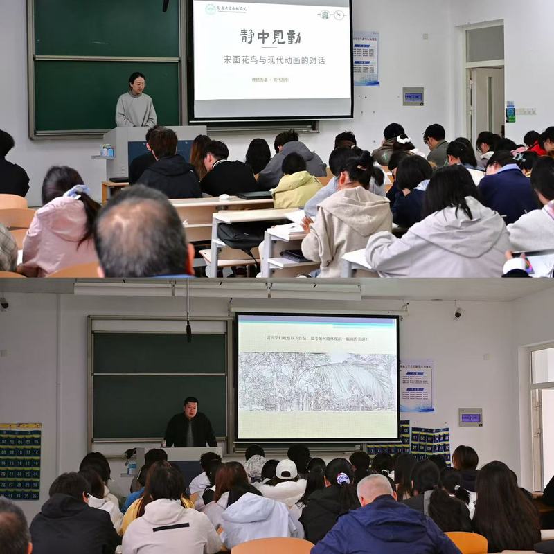 叶敏《鸟类的飞行运动》课围绕“鸟的飞行运动规律”开展。讲述了从宋人花鸟的典雅气韵到动画森林的生机盎然,引导学生理解文化传承与创新发展的统一。课程尾声,结合《哪吒》角色动画,深刻阐释唯有掌握运动规律,才能为角色注入灵魂与生命力,启发学生领悟精益求精、守正创新的工匠精神,实现了知识传授与价值引领的有机融合。徐志勇讲授了《速写—风景速写的构图》专题,以“关注传统文化艺术,增强文化自信”为主题,将传统中国画构图理念与速写构图方法通过实例比较分析,使学生直观感受到风景速写构图可以向中国画构图理念进行更多借鉴和吸收,同时与西方绘画理念相比较,使学生深刻体会到中国画的伟大之处。引导学生结合专业特点主动了解和关注本民族优秀传统文化艺术,增强文化自信。