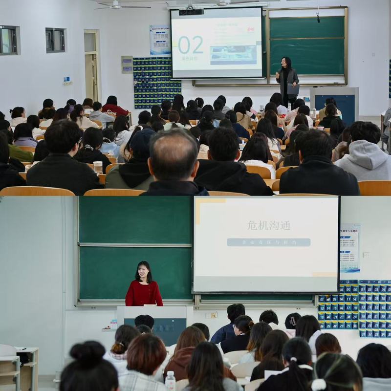 柏颖慧讲授的《竞争战略抉择与商业伦理》专题,以华为应对思科知识产权诉讼的真实商业事件为核心,将“自主创新”“遵纪守法”“合作共赢”等思政要素融入战略分析过程,以视频导入、小组谈论的形式激发学生的代入感,对此展开竞争战略与商业伦理的融合分析,实现了战略理论与价值观层面的双重收获。何玲莉讲授的《危机中的沟通智慧:责任与担当的思政实践》专题,聚焦企业危机沟通中的责任担当与价值引领,通过始祖鸟烟花事件、理想汽车召回等现实案例,强调企业应超越经济目标,将社会责任与道德责任作为核心发展理念。