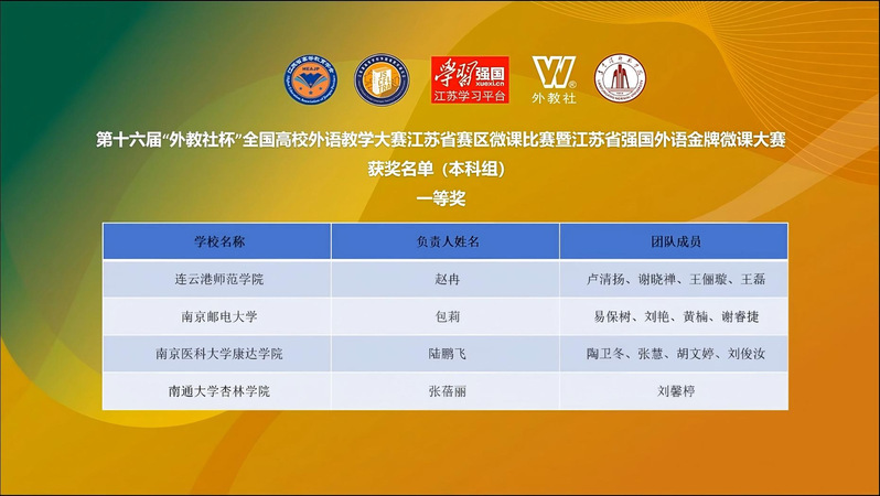 据悉,本次大赛由江苏省高等学校外国语教学研究会、“学习强国”江苏学习平台与上海外语教育出版社联合主办,旨在深化外语教学改革、创新育人模式,服务国家战略需求,助力高素质外语人才培养,为全省高校外语教学交流搭建了优质平台。