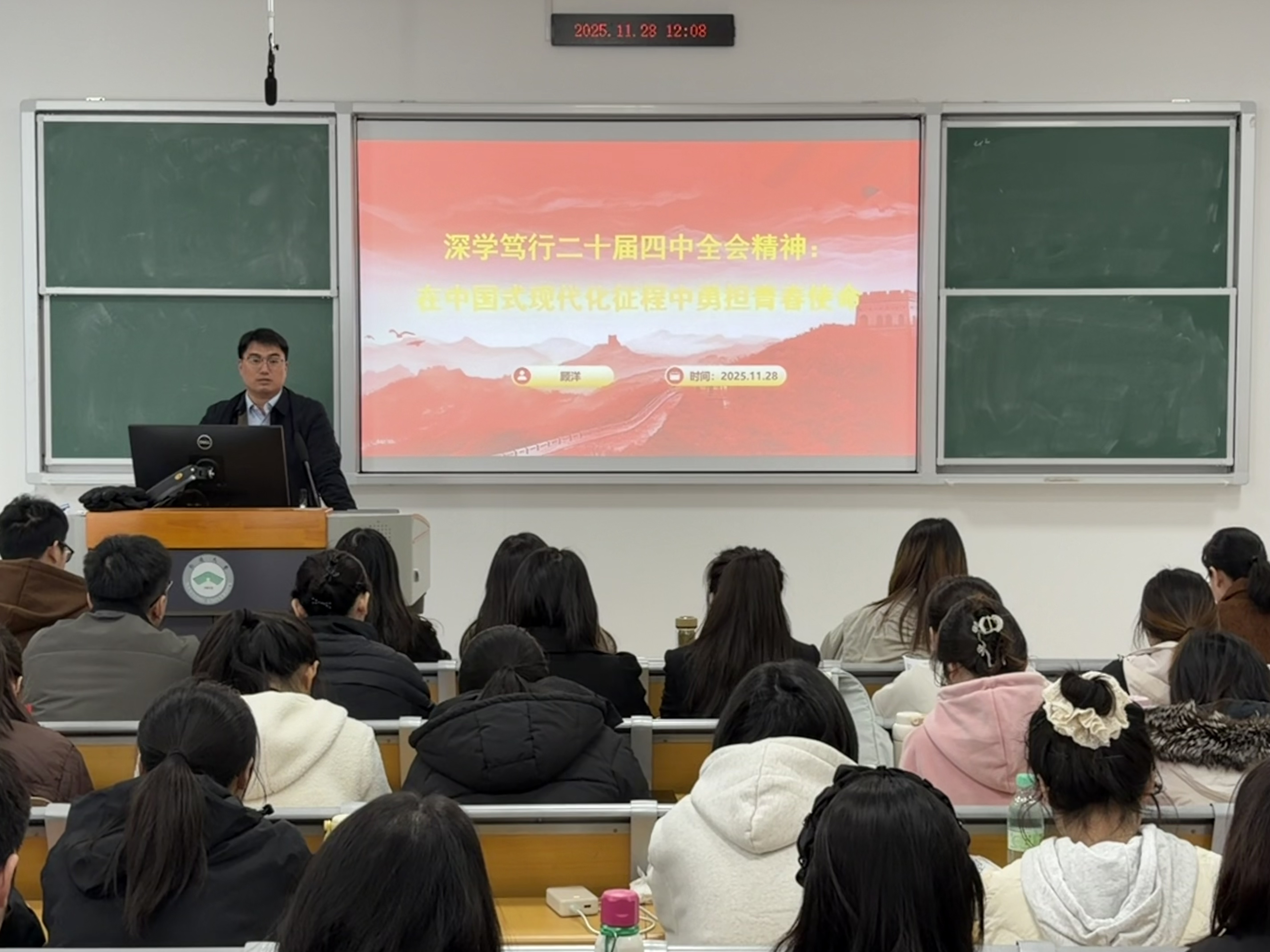 11月28日中午,医学部学生第一党支部、第二党支部在啬园校区24-211教室开展专题党课,医学部党总支副书记顾洋为全体党员上了“深学笃行二十届四中全会精神:在中国式现代化征程中勇担青春使命”的主题党课。