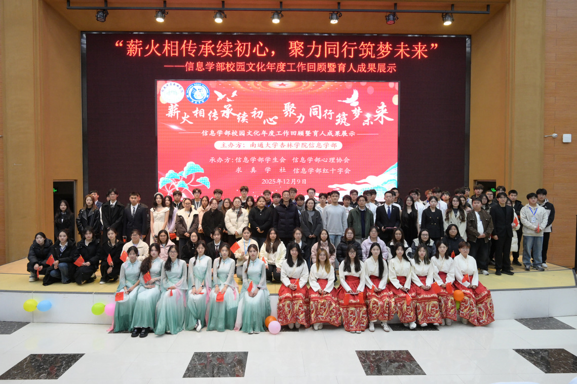 为落实立德树人根本任务,促进学部学生综合素养的全面提升。12月9日晚,信息学部于大活报告厅顺利举办“薪火相传承续初心,聚力同行筑梦未来”2025校园文化年度工作回顾暨育人成果展示活动。学部主任王汉成、学部党总支副书记罗晶晶等出席活动。