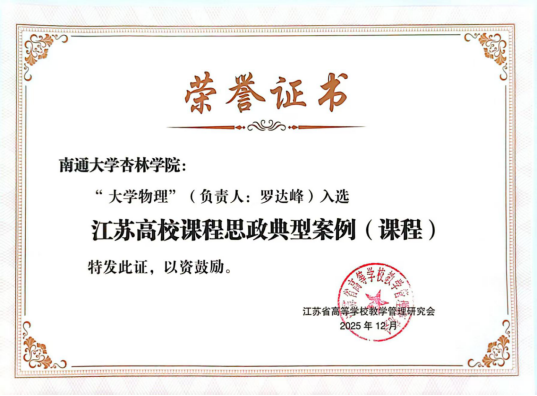 近日,江苏省高等学校教学管理研究会、课程思政建设工作委员会公布了2025年江苏普通本科高校课程思政典型案例入选名单。我院理学部罗达峰老师的《大学物理》课程入选。