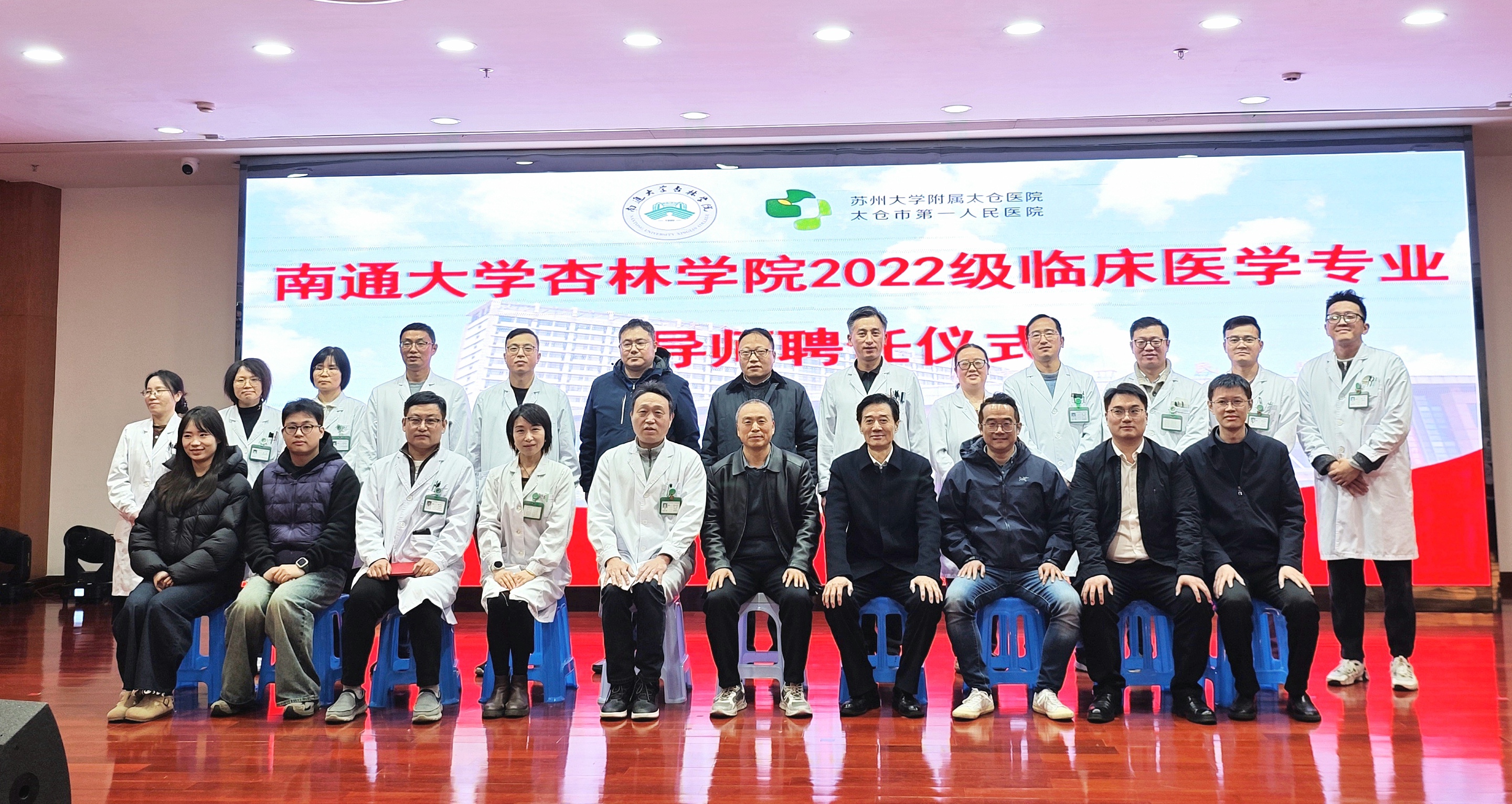 为深化医教协同育人、提升临床医学人才培养质量,12月24日-25日,我院分别在太仓市第一人民医院、南通市海门区人民医院举办2022级临床医学专业导师聘任仪式。学院副院长潘志勇、医学部主任管图华,太仓市第一人民医院副院长陆小军,海门区人民医院院长姜新峰、副院长施晓健出席相关仪式。
