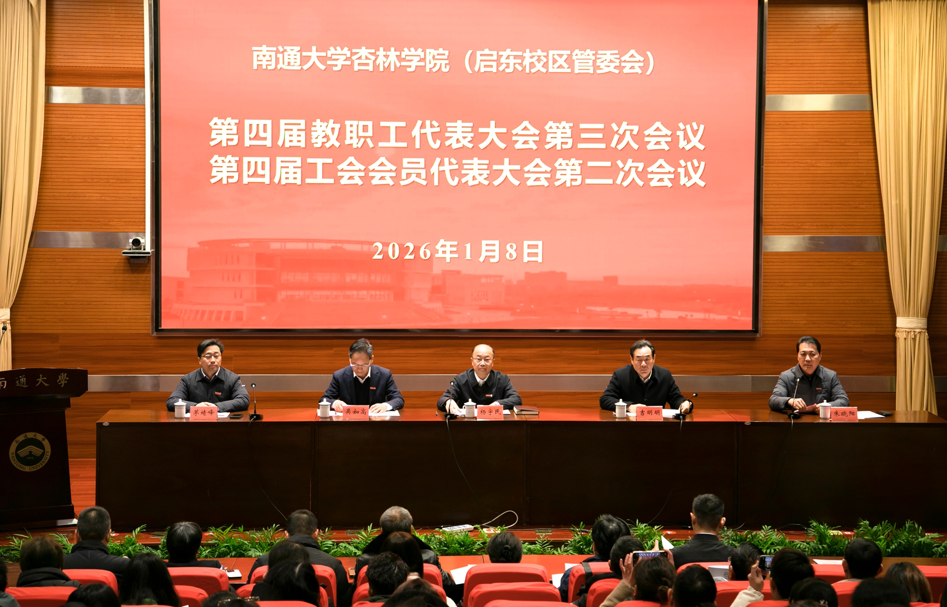 1月8日上午,学院(管委会)召开第四届教职工代表大会第三次会议、工代会第二次会议。校党委书记杨宇民出席会议并讲话,校党委常委、副校长、杏林学院理事会理事长吉明明和校党委常委、组织部部长、杏林学院副理事长吴如高出席会议。杏林学院(启东校区管委会)党委书记、启东校区管委会常务副主任朱晓阳主持会议。