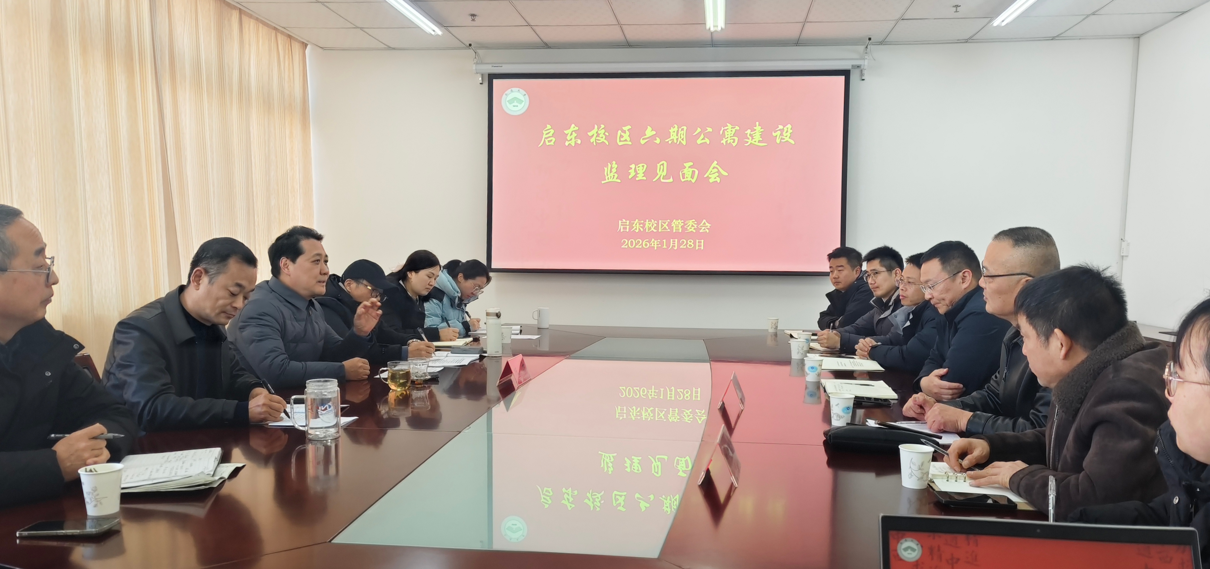 为加快推进启东校区六期公寓工程建设,保障项目规范实施,1月28日上午,学院(管委会)召开启东校区六期公寓建设监理中标单位见面会。学院(管委会)党委书记、启东校区管委会常务副主任朱晓阳出席会议并讲话,学院副院长、启东校区管委会副主任张效诗主持会议。