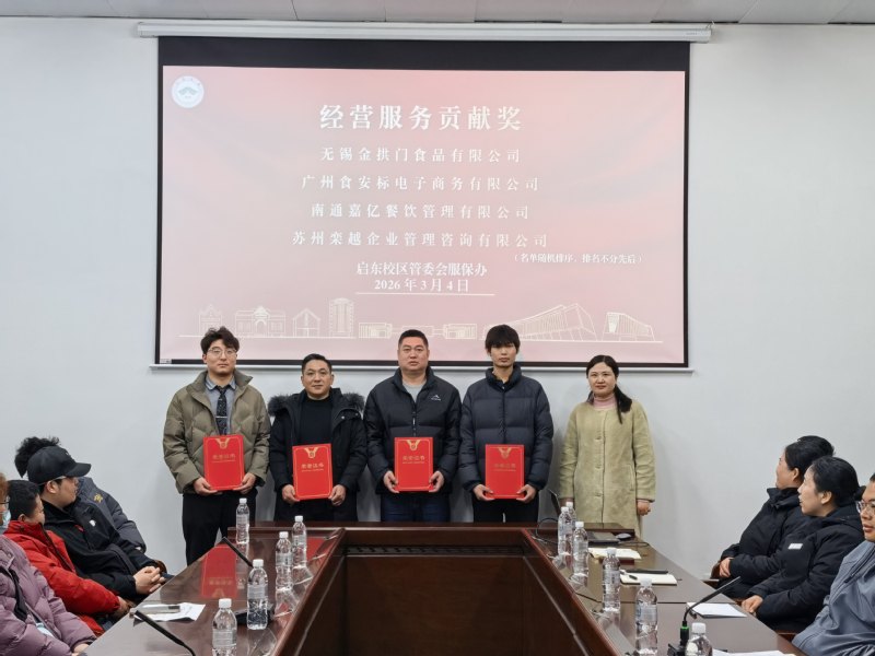 学院(管委会)服保办、安督办及物业相关人员分别解读经营服务监管规范、强调校园交通安全,并通报环境卫生、经营与住宿安全等工作要求。会后,对上一年度表现优异的四家单位颁发“经营服务贡献奖”。