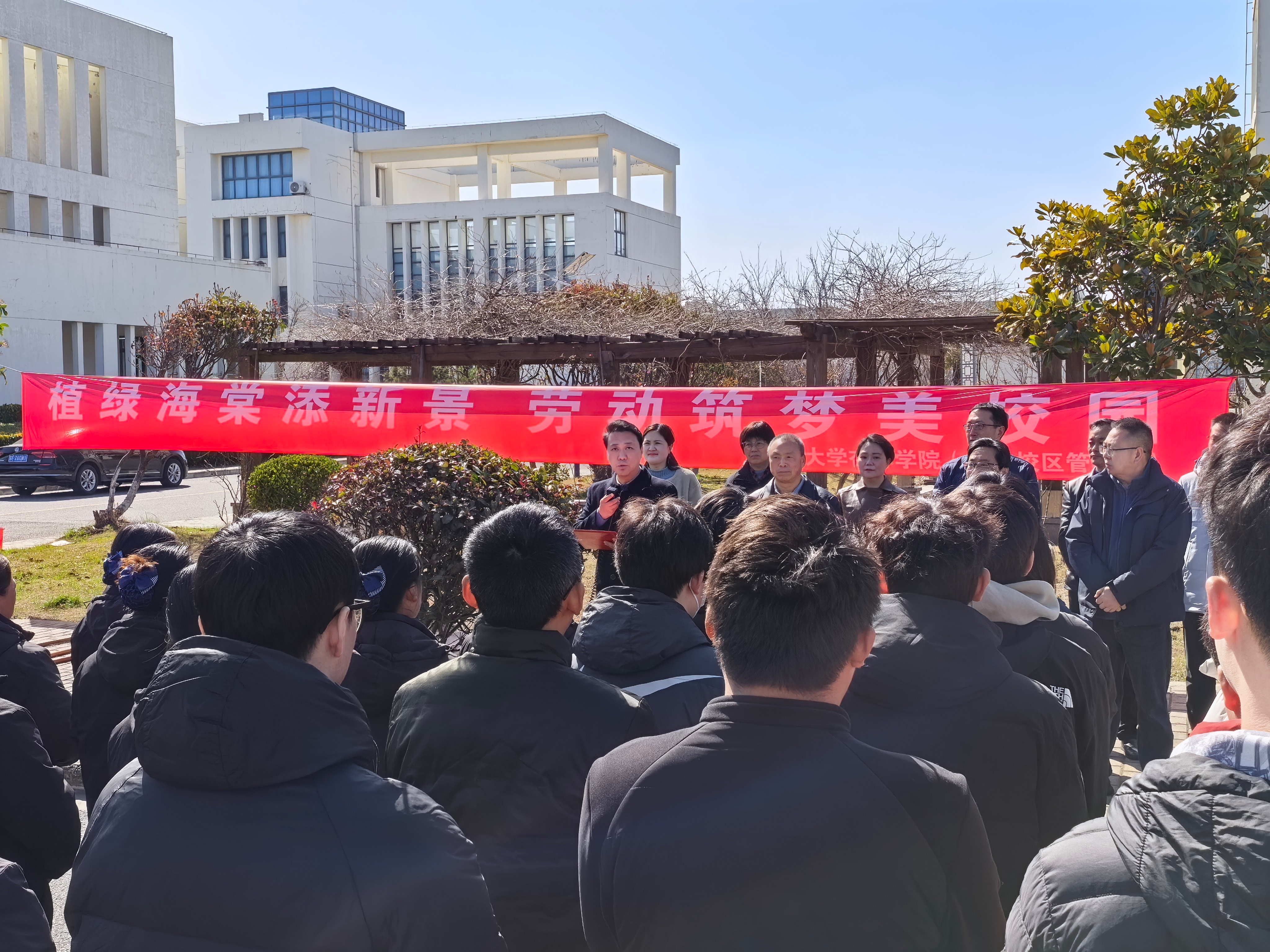 活动中,朱晓阳回顾了启东校区绿色校园建设成果,指出校区持续打造共青林、棕榈园、梅林、慈孝林、樱花园等特色景观林,校园处处绿意皆是全体师生同心耕耘的成果。他勉励广大青年学生以海棠为志,向阳逐光,将劳动精神融入青春成长,以实际行动厚植校园生态底色;同时号召全体教职员工以身作则、率先垂范,引导学生树立正确的生态与劳动教育观,以劳筑梦、以绿润园,共筑绿色和谐育人氛围。